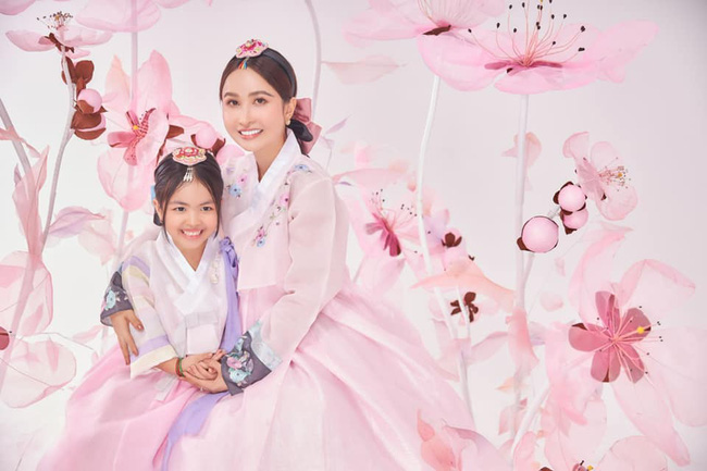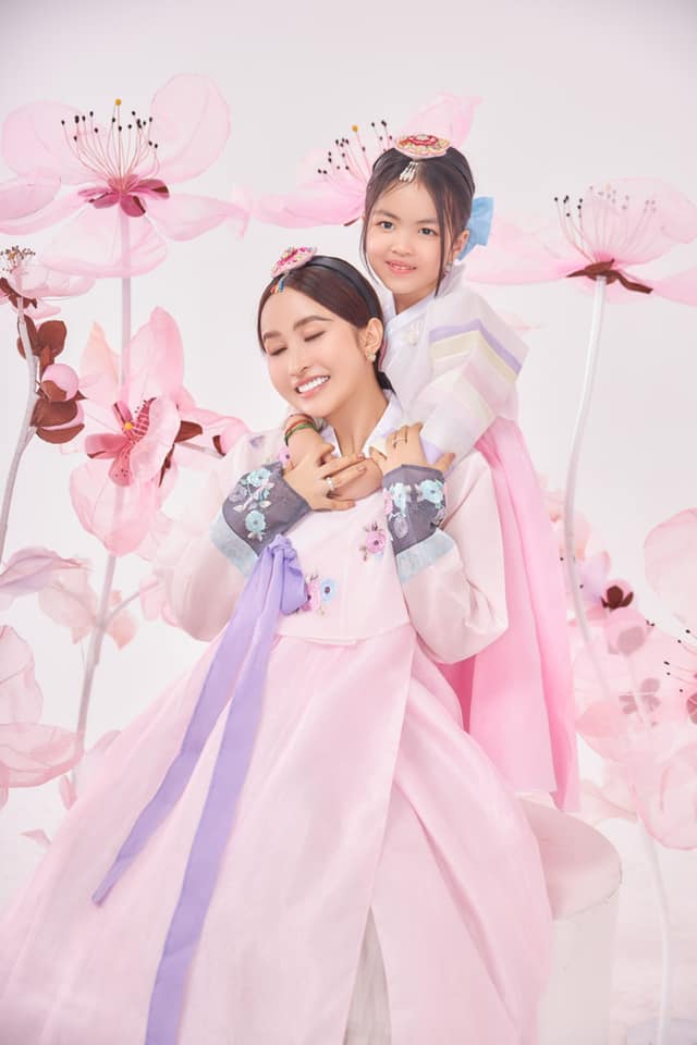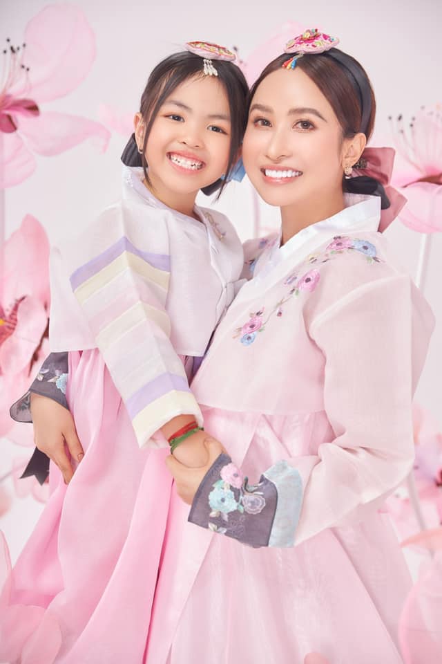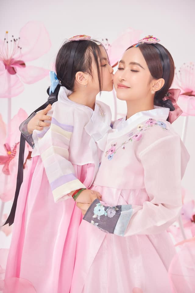 Bộ ảnh mới đây được Mina Phạm chia sẻ trên trang cá nhân của mình là những bức hình 2 mẹ con đang diện hanbok - trang phục truyền thống của người Hàn Quốc. Cả 2 đều vô cùng đẹp và lộng lẫy, bé Nana và mẹ luôn có những shot hình thể hiện tình cảm gần gũi và âu yếm nhau vô cùng.