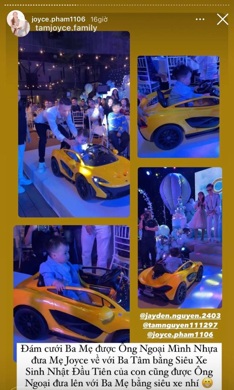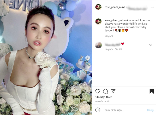 Sau bữa tiệc thôi nôi hoành tráng của con trai nhỏ, Joyce Phạm cũng đăng hàng loạt story cảnh hậu trường và ảnh chụp gia đình cô với khách mời, tuy nhiên không ai thấy mẹ kế của Joyce. Sau đấy, thì người ta mới thấy Joyce Phạm đăng ảnh chúc mừng Jayden trên trang Instagram cá nhân khiến nhiều người bất ngờ.
