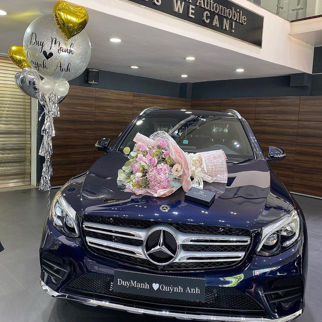 Để chuẩn bị cho cuộc sống hôn nhân sau này, trước đám cưới, vợ chồng Duy Mạnh - Quỳnh Anh không ngần ngại chi tiền sắm sanh những món đồ xa xỉ. Trong đó phải kể đến chiếc Mercedes GLC 300 có giá khoảng hơn 2 tỷ được Quỳnh Anh tậu về.
