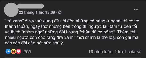 Trước đó, ngày 22/1, chị M. cũng đăng status định nghĩa "trà xanh" đầy ẩn ý. Không biết vợ cũ quản lý Hoài Lâm có muốn nhắc nhở đến ai hay chỉ đăng bâng quơ theo trend thôi.