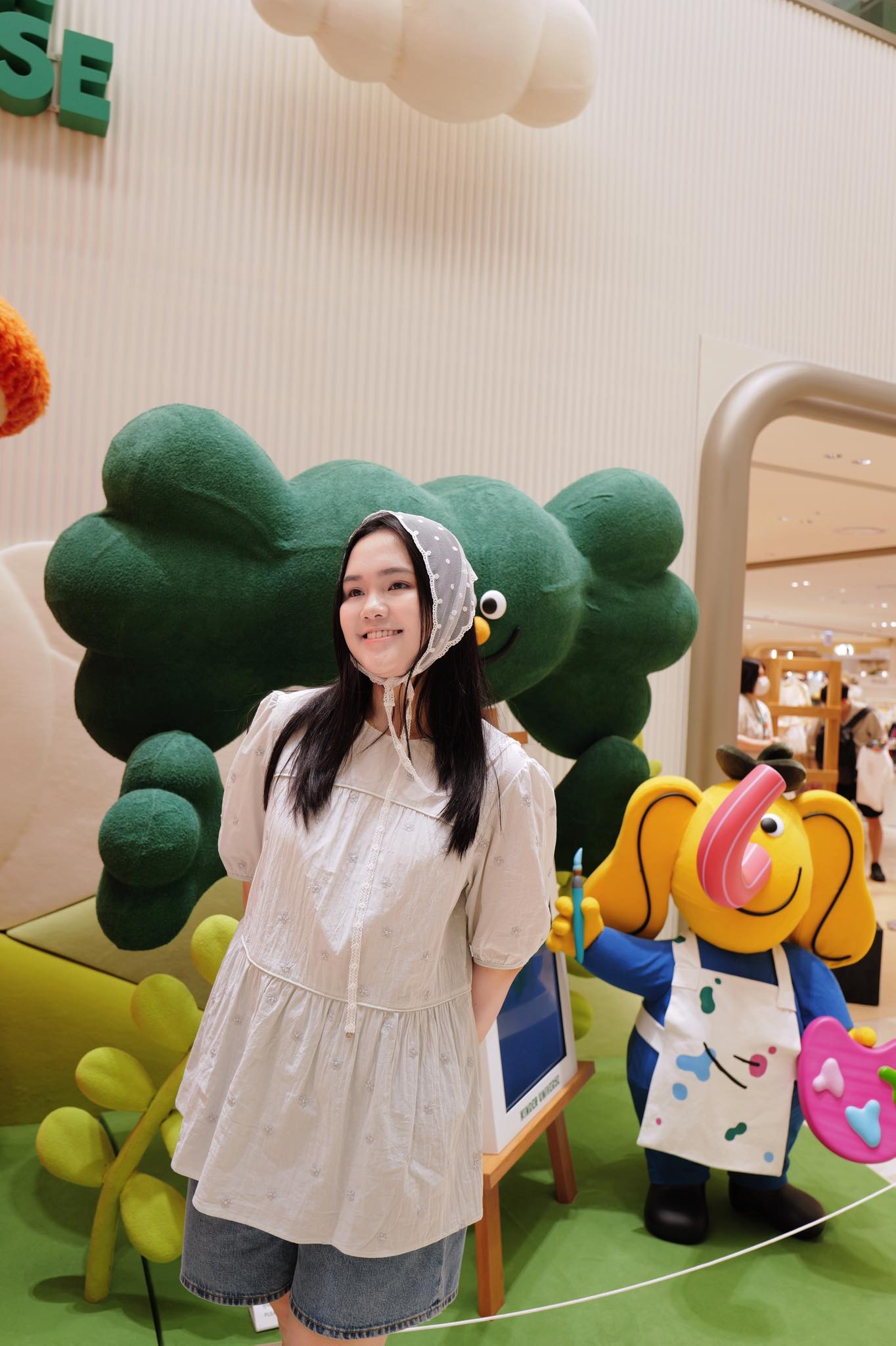 Làn da trắng mịn, mái tóc dài buông tự nhiên và layout makeup gần như "no makeup" càng khiến nàng WAG toát lên nét đẹp trong trẻo đúng chuẩn "công chúa béo" trong lòng Duy Mạnh, "chubby hướng nội" như chính cô tự nhận. Không cần cầu kỳ, không khoe vóc dáng, chỉ với vẻ mộc mạc và biểu cảm dịu dàng, Quỳnh Anh vẫn dễ dàng chiếm spotlight giữa không gian trưng bày toàn màu sắc rực rỡ.