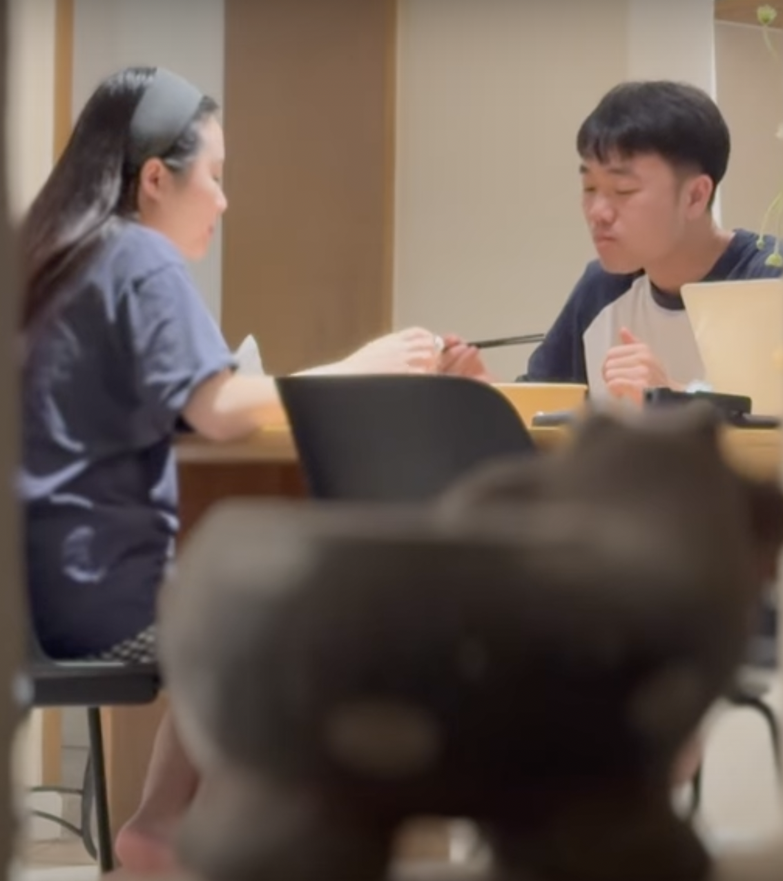 Trong video, vợ Xuân Trường diện một chiếc áo phông trắng tinh khôi đơn giản, trang điểm nhẹ nhàng, mái tóc dài đen mượt buông xõa tự nhiên. Cô ngồi cạnh chồng, với thần thái điềm tĩnh và nhẹ nhàng, gương mặt thanh tú cùng nụ cười mỉm duyên dáng khiến nhiều người không khỏi xuýt xoa.