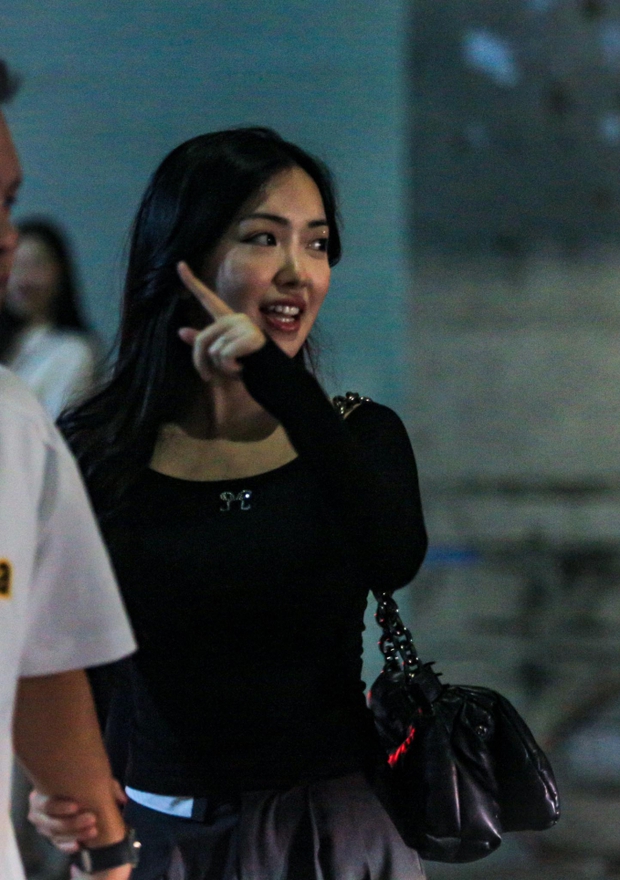 Cô nàng ngồi ở góc khá kín, chỉ xuất hiện khi trận đấu kết thúc ở bên ngoài cửa vào sân vận động. Nhan sắc của Mai Hà Trang - vợ Đức Chinh lập tức lọt ống kính team qua đường. Dù trời tối, chụp vội nhưng trông nàng WAG vẫn vô cùng xinh đẹp.