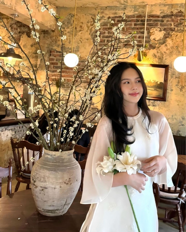 Trên trang cá nhân, nàng WAG Mai Hà Trang - bà xã tiền đạo Hà Đức Chinh - gây chú ý với bộ ảnh diện áo dài Tết duyên dáng. Cô nàng vốn sở hữu nhan sắc xinh đẹp, ngọt ngào, khoác lên mình bộ áo dài truyền thống với họa tiết hoa nhí tăng thêm dịu dàng. Thế nhưng, điều khiến dân tình chú ý lại đổ vào đôi dép cao gót mà Mai Hà Trang sử dụng. Nửa tháng trước, Hà Trang xuất hiện tại đám hỏi của Quang Hải và Chu Thanh Huyền với vòng 2 lùm lùm. Nhưng nay, cô nàng lại mạnh dạn đi dép cao gót cực cao và diện chiếc áo dài dáng suông, khéo che vòng hai khiến dân tình thắc mắc, liệu bà xã Đức Chinh có thực sự đang có tin vui?