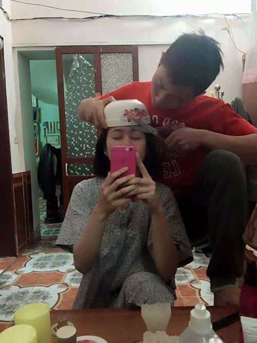 Chia sẻ với chúng tôi, Thảo Bông - cũng là cô gái trong bức hình kể là hai vợ chồng chỉ mới cưới nhau được 2 tháng thôi. "Hôm đó là 7/3, đi học về mình đòi cắt mái để 8/3 đi chơi thì chồng mình bảo để chồng cắt cho.