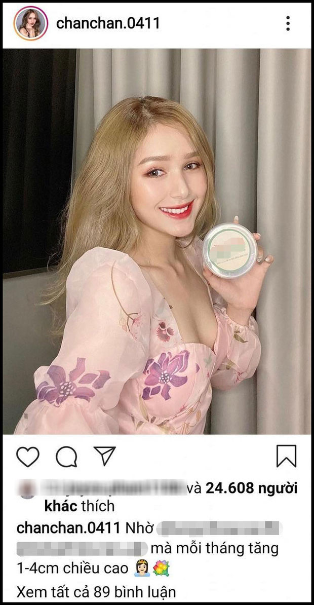 Trong một bài đăng mới đây trên instagram, Xoài Non cho biết chỉ cần dùng sản phẩm trên tay mình là mỗi tháng sẽ tăng từ 1-4cm chiều cao. Nếu như sản phẩm này có tác dụng đúng như cô nàng miêu tả thì mọi người đã không cần tìm đủ mọi cách để cao lên mà cứ uống thuốc là cao chọc trời như tòa Landmark 81 ở Sài Gòn rồi.