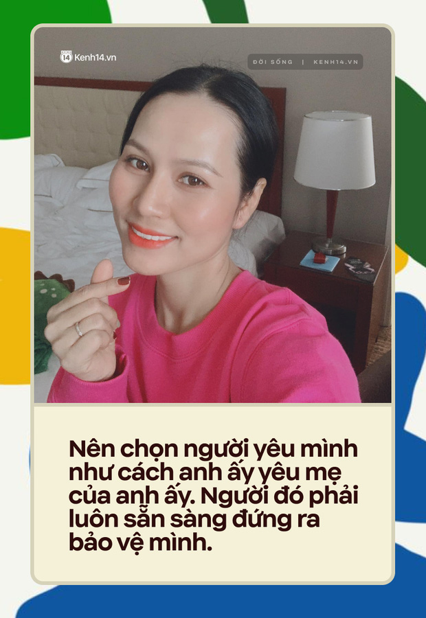 Yêu xa phải tin tưởng nhau nhiều hơn những người yêu gần đó em. Nhờ suy nghĩ như vậy nên hai đứa mới bền tới ngày hôm nay. Hồi đó, chị thấy cầu thủ toàn yêu ca sĩ, diễn viên, người mẫu đồ hông à. Còn cảnh của chị bình thường, chỉ đủ ăn đủ xài. Trong giai đoạn ảnh nổi tiếng lên, chị cũng mặc cảm.