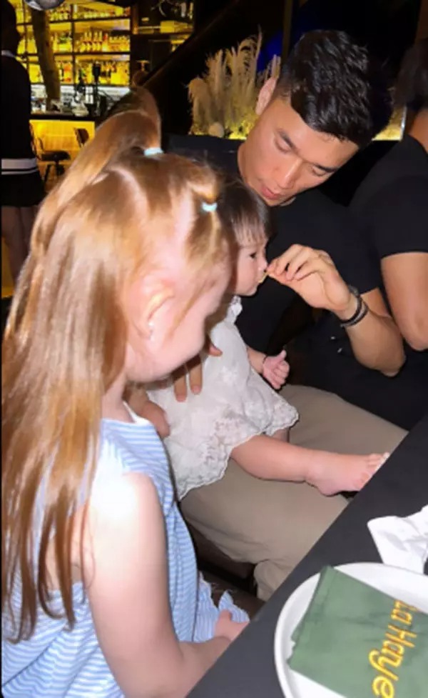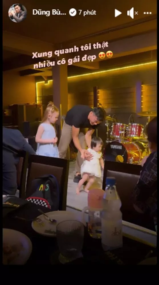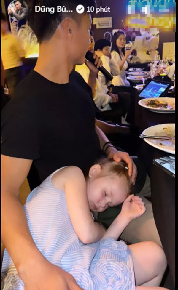 Ngoài việc chăm sóc em gái của Dianka, Tiến Dũng còn khoe khoảnh khắc bế một cô bé khác trên tay. Chỉ vài chiếc clip ngắn ngủi, thủ môn xứ Thanh đã thể hiện sự khéo léo khi hết đút thức ăn lại đến dạy cô bé này tập đi.