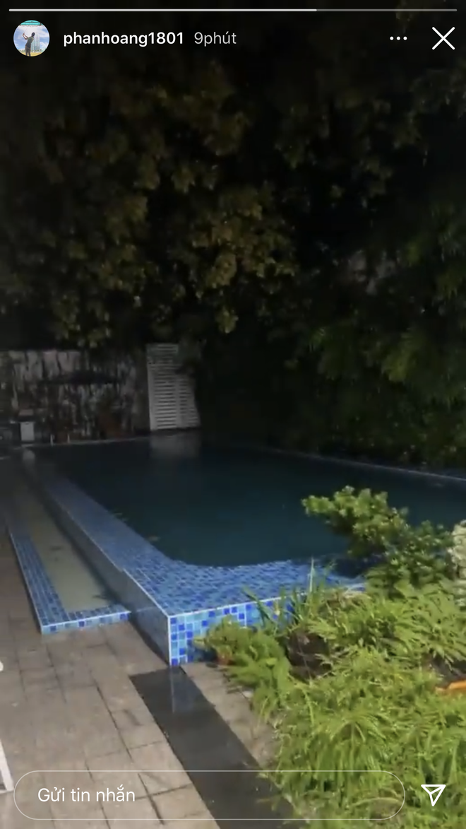 Tuy nhiên mới đây Primmy Trương lại check-in bể bơi xanh mát ở biệt thự nhà họ Phan. Trong ảnh, người ta có thể nhìn thấy một góc bể bơi rất to, xung quanh được trang trí bằng rất nhiều cây cảnh đủ chủng loại.