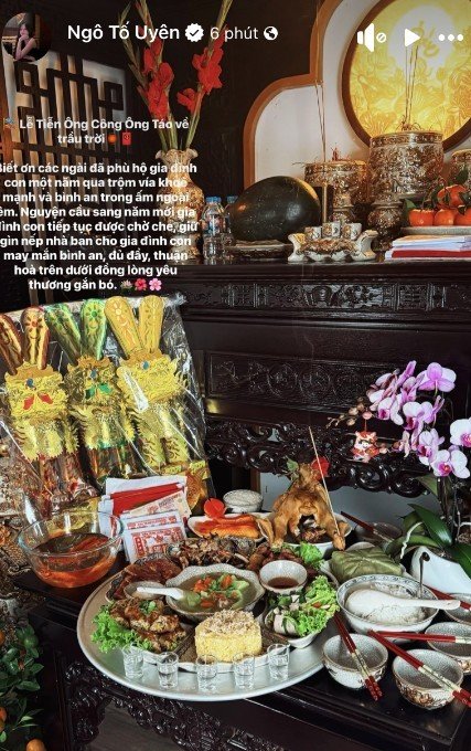 Hình ảnh mâm cỗ cúng ông Công ông Táo do Ngô Tố Uyên – bà xã trung vệ đội tuyển Việt Nam Nguyễn Thành Chung chuẩn bị tươm tất và tinh tế đã nhanh chóng thu hút sự chú ý trên mạng xã hội. Đây là khoảnh khắc đón Tết đầu tiên của gia đình trong căn biệt thự mới khang trang, đánh dấu một năm mới đầy ấm áp của cặp vợ chồng được yêu mến.