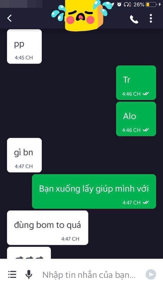 Cụ thể chàng shipper cho biết, người gọi điện đặt đơn hàng là giọng con gái chứ không phải giọng con trai. Và giọng điệu như đùa cợt người làm nghề shipper.Ngoài ra anh chàng này cũng cho biết, cô gái chỉ nhắn tin qua Facebook với anh. Nói rằng là gia đình sẽ đền bù thiệt hại nhưng cho đến giờ này anh vẫn chưa thấy gì.