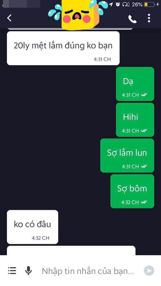 Còn việc bạn hay em bạn đặt, tin nhắn mẹ bạn nhắn xin lỗi về việc bạn đã làm, Còn chuyện 20 ly mình đã đem lên văn phòng công ty và họ đang xử lý, sẽ bồi hoàn cho mình. Và bạn cũng đừng điện thoại số này đến số kia cho tôi nữa. Bạn hãy mau liên hệ xin lỗi và bồi hoàn trả cho công ty tôi”.