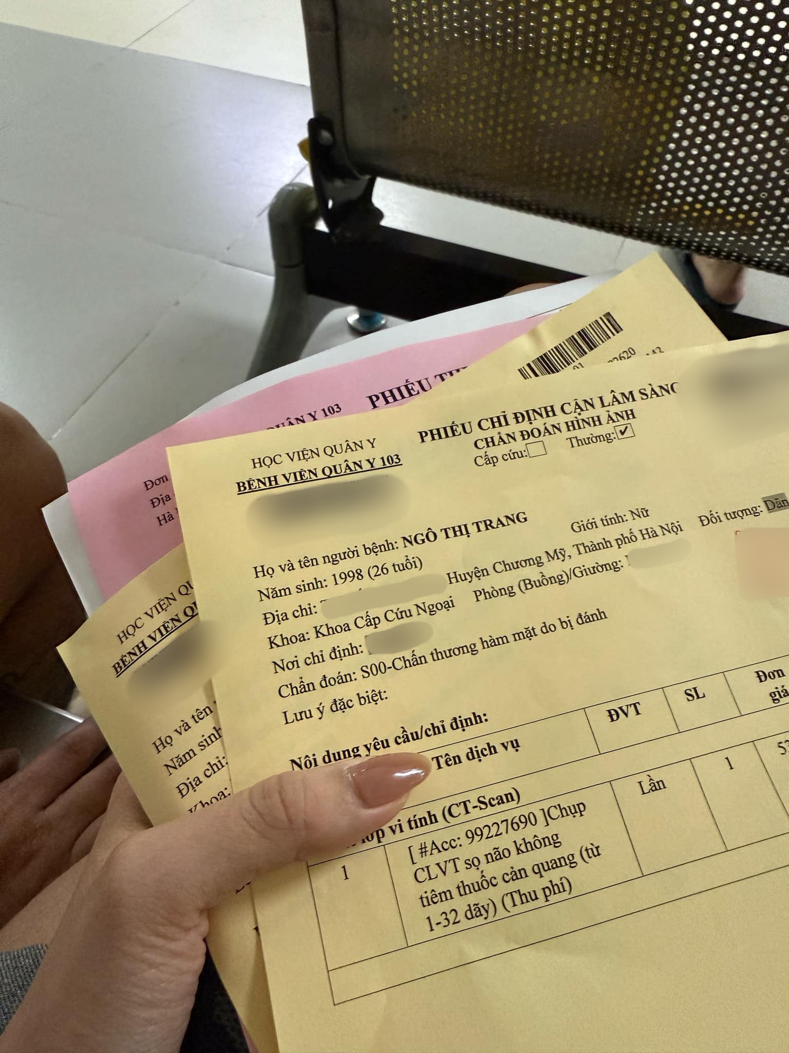 Sau đó, Trang có đi trình báo cơ quan chức năng ở xã Lam Điền (huyện Chương Mỹ). Cô cũng đi khám ở bệnh viện và nhận được kết quả chẩn đoán "Chấn thương hàm mặt do bị đánh". Hiện tại, cô đang liên hệ với luật sư để có thêm những động thái pháp lý về vụ việc này.