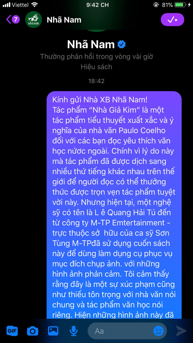 - Inbox cho Nhã Nam hay tác giả cuốn sách gốc thì cũng chả ai làm gì được cả mà nhỉ?