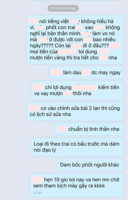 Trước đó, vào ngày 6/7, sau khi Z.D tố chồng ngoại tình, mẹ chồng cô cũng nhanh chóng xuất hiện ở drama bằng cách tung loạt tin nhắn với con dâu. Ngoài việc tố con dâu vay tiền không trả, bà còn cho rằng con dâu chỉ lợi dụng con trai mình, không có tình cảm vợ chồng gây tổn thương cho nhiều người.
