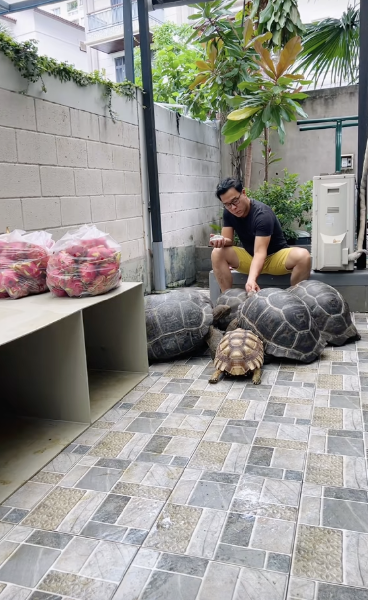 Mới nhất, “vua cá Koi” đã chia sẻ clip đang chơi đùa cùng dàn chú rùa cảnh - một trong những thú cưng của mình. Phía dưới bài đăng, cư dân mạng để lại nhiều bình luận quan tâm, trong đó có nhắc đến Hà Thanh Xuân và Quang Lê.
