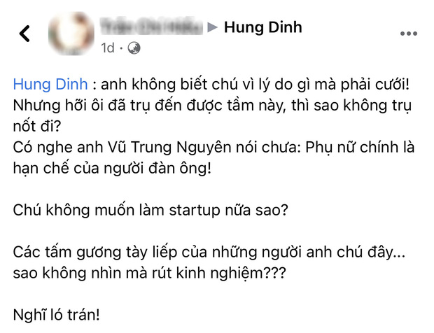 Cụ thể, người bạn này chẳng nói chẳng rằng đã tag CEO Hùng Đinh vào bài viết của mình kèm lời "chất vấn" đầy đanh thép: "Anh không biết chú vì lý do gì mà phải cưới! Nhưng hỡi ôi đã trụ đến được tầm này, thì sao không trụ nốt đi?".