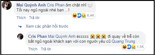 Màn đáp trả siêu lầy lội của cặp đôi này nhanh chóng nhận được nhiều lượt quan tâm của cộng đồng mạng. Dân mạng vào troll Cris Phan rằng không biết nên thả "Haha" hay "Sad" cho bức hình của anh nữa. Thế là Cris Phan đã hết được tự do rồi, từ nay anh chính thức bị "đeo gông" mà người quản lý không ai khác chính là bà xã Mai Quỳnh Anh của anh.