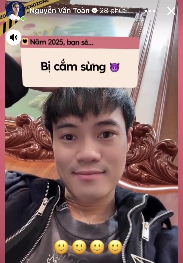 Dịp đầu năm giới trẻ thích thú với trào lưu dự đoán năm 2025. Tiền đạo Nguyễn Văn Toàn cũng không nằm ngoài cuộc chơi. Khi Văn Toàn "xe túi mù" thì bị dự đoán "Năm 2025, bạn sẽ bị cắm sừng".