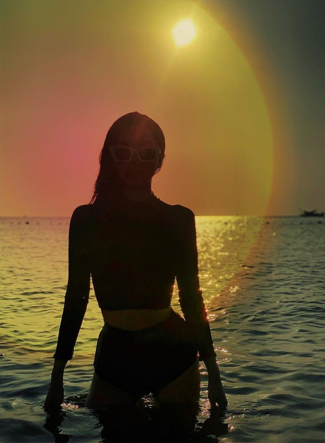 Linh Sugar thì lại chơi trò bí ẩn khi chụp ảnh ngược sáng với hoàng hôn. Tuy không rõ mặt nhưng được cái thế này thì lại khoe trọn từng đường cong cơ thể luôn.