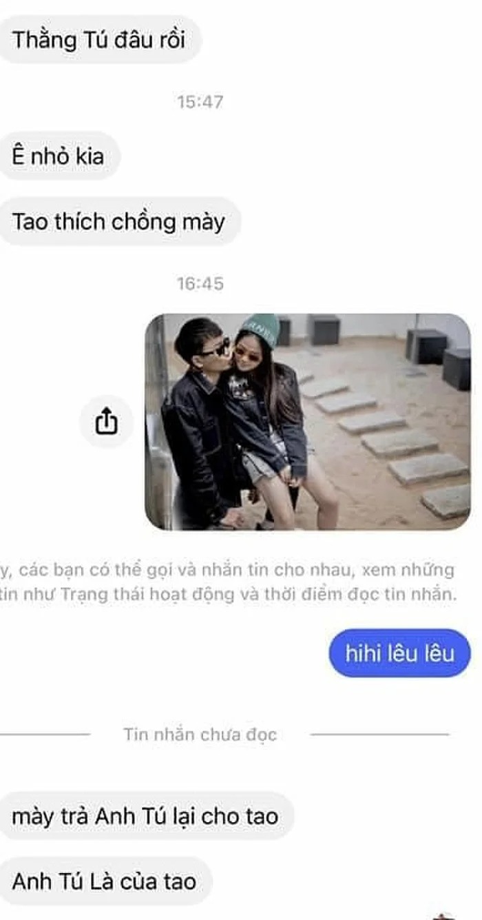 Cụ thể, tài khoản này nhắn tin cho Huyền My với đoạn tin nhắn có nội dung như sau: “Ê nhỏ kia, thằng Tú đâu rồi. Tao thích chồng mày. Mày trả Anh Tú lại cho tao”. Bất ngờ bị đòi chồng, Huyền My tỏ ra hoang mang. Cuộc trò chuyện trên đã nhanh chóng thu hút sự quan tâm của dư luận. Đây có lẽ là một fan quá khích.