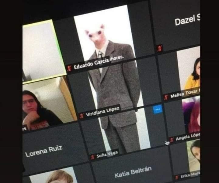 Ba sinh viên này đã hùa với nhau, cùng kết hợp avatar lại thành hình một chú mèo đang mặc vest! Theo đó, khi thấy ô camera của mình đượ xếp thành một hành dọc, cả ba đã chia nhau để avatar thành những phần nhỏ, và ghép lại thành một hình hoàn chỉnh. Cụ thể, Eduardo để avatar mặt chú mèo, Viridlana để ảnh phần thân giữa mặc vest và Sofia để avatar phần chân.