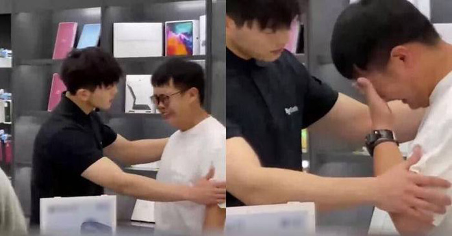 Khi thấy khách hàng khóc không ngừng và đang trong trạng thái bất ổn, nam nhân viên cố gắng lắng nghe, tìm cách an ủi.