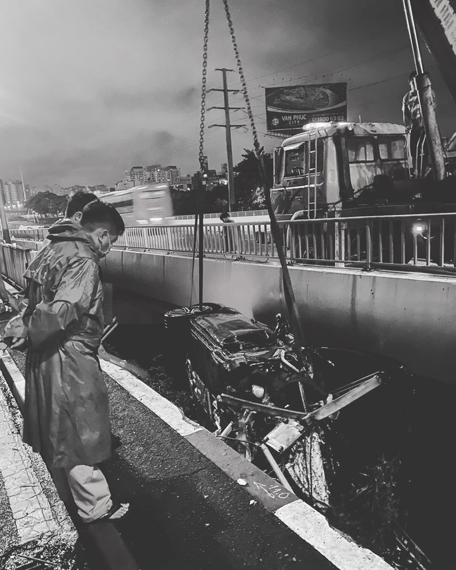 Khi vừa lên cầu Sài Gòn, anh N. điều khiển xe đi làn phía ngoài cùng bên trái. Thời điểm này, trời đang có mưa, anh N. bị mất lái khiến chiếc xe tông mạnh vào dải lan can bằng sắt và rơi xuống bãi đất trống giữa hai bên cầu.
