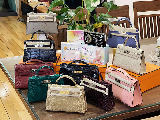 Vũ Hồng Phúc đã bắt đầu "chơi" túi Hermès từ nhiều năm trước. Cô dành nhiều tâm huyết để sưu tầm những mẫu túi hot, hiếm có và độc lạ với mức giá dao động từ vài trăm đến vài tỷ đồng. Mỗi khi ra ngoài, Vũ Hồng Phúc luôn xuất hiện với những bộ cánh sành điệu cùng một chiếc túi Hermès được mix&match khéo léo, tạo vẻ ngoài vô cùng sang chảnh và khí chất.