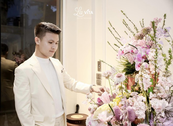 Theo đó, từ 6h sáng, Quang Hải đã diện suit trắng, rạng rỡ tới nơi chuẩn bị để nhận tráp. Được biết, nam cầu thủ là một người rất kỹ tính, tự tay lựa chọn từng món đồ để mang sang nhà vợ. Không những vậy, với hình ảnh tráp quà được trang trí full hoa tươi, hoa quả nhập khẩu và quà bánh cũng đều là hàng xịn, nhiều người nhận định mức giá mà anh chàng đầu tư “không phải dạng vừa”.