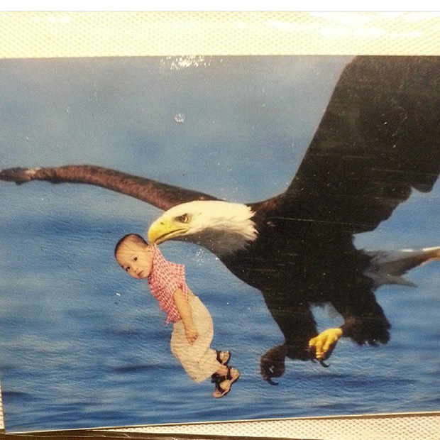 Danh hiệu hài hước nhất chắc chắn thuộc về anh chàng Trung Japan. Thiếu gia Hà thành được ghép ảnh bị diều hâu tha đi với gương mặt khá hoang mang.