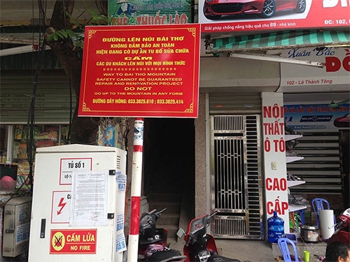 Hoạt động leo núi Bài Thơ đã bị dừng từ lâu, dọc đường lên núi cũng có nhiều biển cấm nhưng người dân bỏ qua để chinh phục “nóc nhà Hạ Long”.