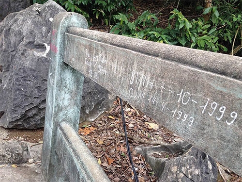 Lan can bảo vệ cùng nhà dừng chân chi chít các hình vẽ... |