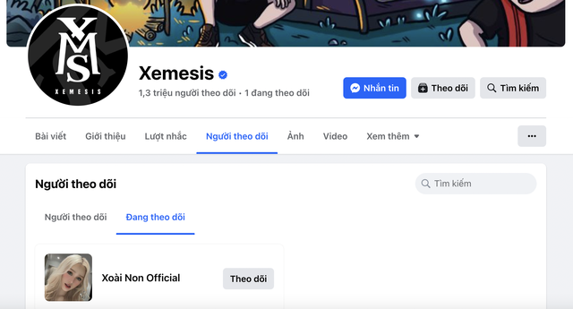 Ngược lại, page Xemesis cũng chỉ theo dõi duy nhất mình page của Xoài Non.
