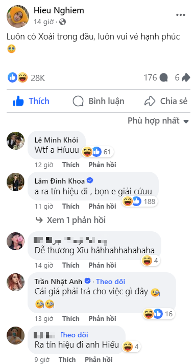Bên dưới bài đăng của Xemesis, không chỉ dân mạng mà ngay cả bạn bè quen thuộc cũng thi nhau vào bình luận. Ai cũng cho rằng có thể Xoài Non đang có gì đó khiến Xemesis phải chiều vợ vô điều kiện thế này. Nhưng cũng chẳng ai biết đó cụ thể là chuyện gì. Trong khi đó, người trong cuộc thì vẫn giữ im lặng đến cùng mặc cho dân tình thi nhau đoán già đoán non.