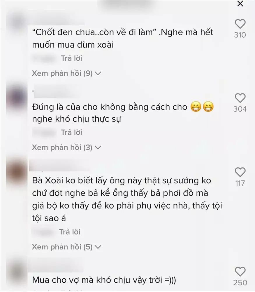 Đi bên cạnh, nghe chồng than thở, Xoài Non sau đó đáp lại: "Trời ơi, anh nói như em lợi dụng vậy đó. Anh nói lại đi, anh mua hay vợ ép?”.