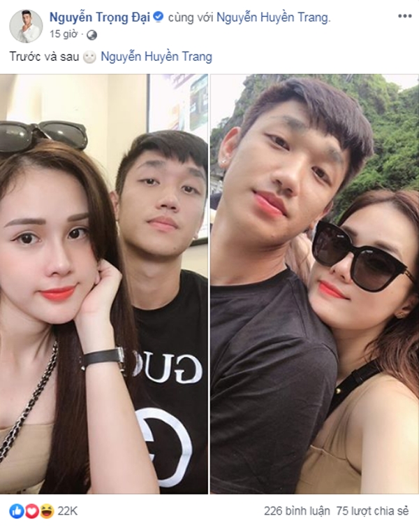 Trong một diễn biến mới đây nhất, Trọng Đại công khai đăng hình tình cảm cùng bạn gái Nguyễn Huyền Trang trên facebook cá nhân. Đây là động thái đầu tiên của chàng cầu thủ này sau khi khiến dân mạng xôn xao vì xóa hết ảnh bạn gái trên trang cá nhân.