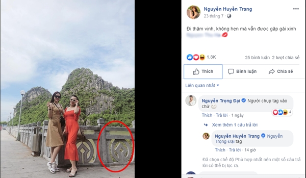 Trước đó vào ngày 23/7, Huyền Trang đã có chuyến du lịch cùng bạn bè tại Quảng Ninh. Dân mạng phát hiện ra chiếc váy mà Huyền Trang mặc cùng khung cảnh trong ảnh có sự trùng hợp với tấm hình mà cô nàng đã chia sẻ trên facebook.