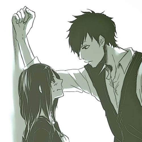 Hình ảnh kabe-don thường thấy trong manga: Nữ chính run rẩy và sung sướng khi được nam chính đè vào tường. |