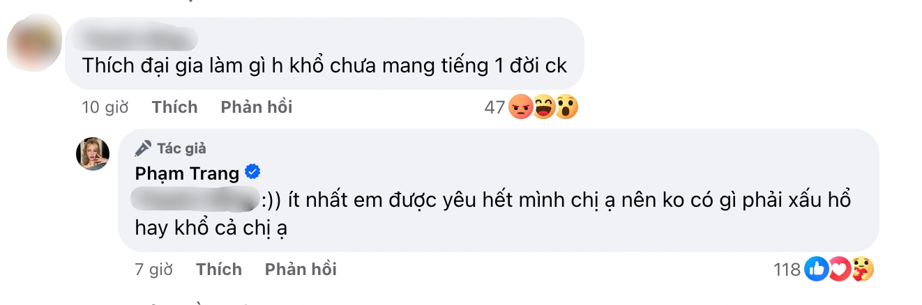 - "Thời nào còn chê phụ nữ "một đời chồng" yếu kém mà đi phán xét người ta. Chê mạnh".