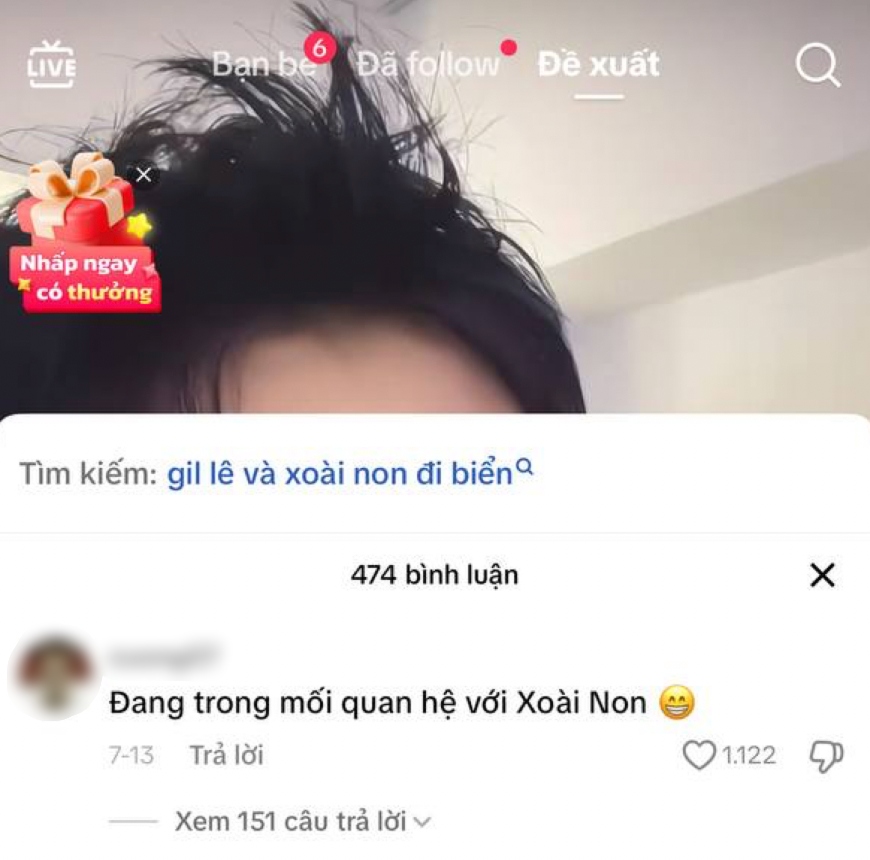 Trước đó, trên các nền tảng MXH cũng xuất hiện từ khóa tìm kiếm "Gil Lê và Xoài Non đi biển". Vì vậy khi Xoài Non đăng ảnh ở bờ biển, cư dân mạng không khỏi liên tưởng đến việc có Gil Lê đi cùng. Tuy nhiên khi bấm vào cụm từ khóa nói trên, không có bất cứ hình ảnh hay video liên quan nào hiện ra.