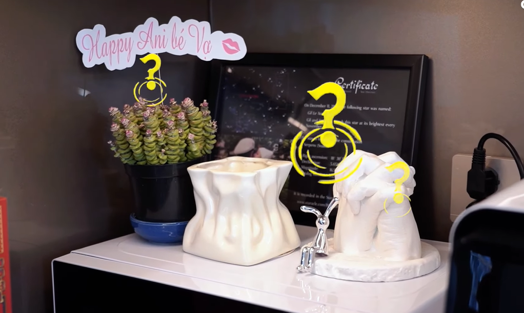 Tại đây, nhiều netizen cũng chú ý đến những chi tiết đồ vật liên quan đến Gil Lê và tình yêu của cả hai như nước hoa, tượng tay Molove,.... Chưa dừng lại ở đó, trong video review nhà này, cô nàng cũng cởi mở giới thiệu những đồ vật kỷ niệm, bức ảnh có chồng cũ - Xemesis.
