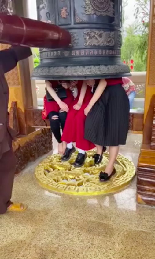 07/02/2022 15:03Xôn xao clip 3 cô gái chui vào trong chuông lớn để sư thầy gõ 'giác ngộ' dịp đầu năm