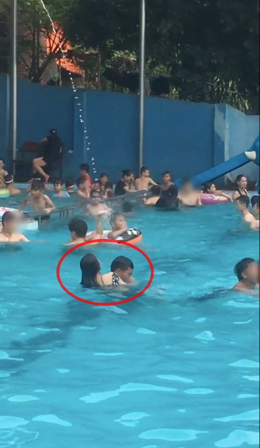 Theo đó, một đoạn clip ghi lại cảnh một cô gái đang vui vẻ chơi đùa với những cử chỉ va chạm cùng một nhóm thanh niên tại hồ bơi được ghi lại. Trong đoạn clip, cô gái liên tục được một nhóm thanh niên khoảng 3 người, ôm, bế dưới bể nước vui đùa.