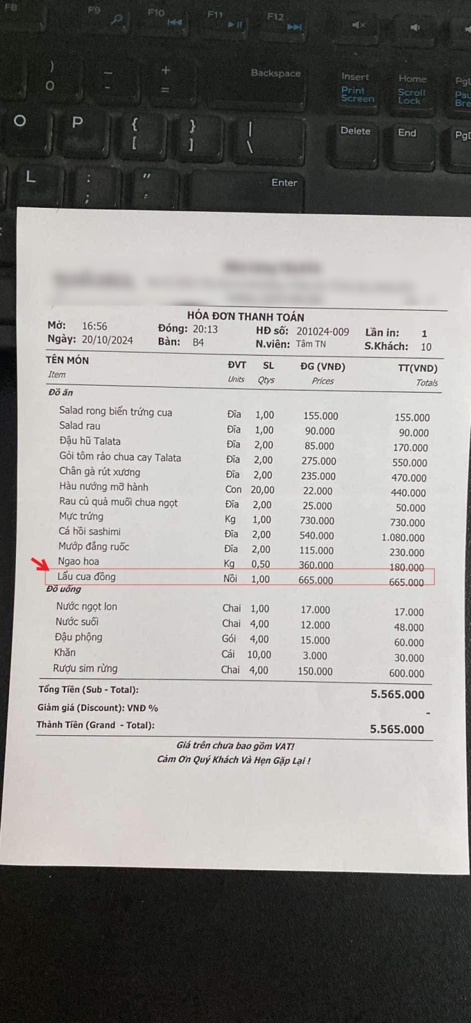 Tôi bỏ tiền triệu ra mời bạn bè đến quán đến nhà ăn để vui vẻ nhưng thứ mà tôi nhận được là thái độ của nhà hàng với khách hàng".
