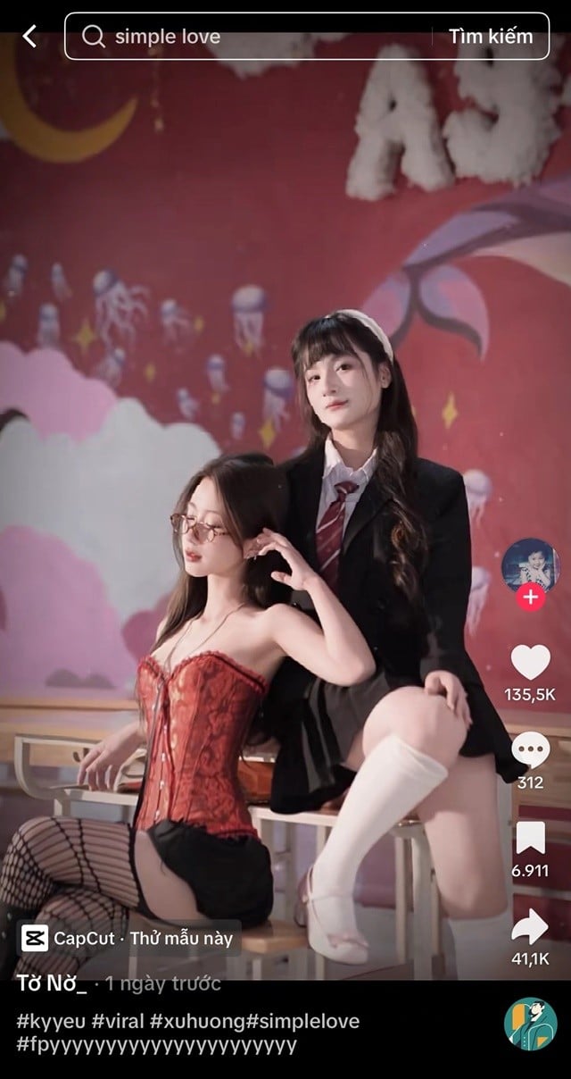 Trong bộ ảnh gây tranh cãi, một nữ sinh ngồi ở vị trí trung tâm diện trang phục cúp ngực màu đỏ, kết hợp quần ngắn và tất ren, tạo nên hình ảnh bị nhiều người cho là không phù hợp với môi trường học đường. Bối cảnh chụp ngay trong lớp học càng khiến dư luận phản ứng gay gắt.