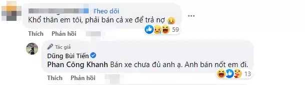 Chưa hết, mới đây Bùi Tiến Dũng đã lên mạng xã hội tố CLB TP.HCM vi phạm hợp đồng, trốn tránh trách nhiệm trong vấn đề chi trả phí lót tay. Dưới bài viết, người này đã vào bày tỏ sự thương cảm: "Khổ thân em tôi, phải bán cả xe để trả nợ". Thủ thành xứ Thanh đã lầy lội đáp lại: "Bán xe chưa đủ anh ạ. Anh bán nốt em đi".