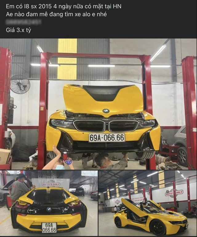 Mới đây, thông tin trên Pháp luật & Bạn đọc, trong một nhóm chuyên về mua bán xe thể thao trên Facebook đã xuất hiện một bài đăng bán xe thu hút sự chú ý của cộng đồng mạng. Cụ thể, chiếc xe được rao bán ở đây là một chiếc BMW i8 sản xuất năm 2015. Bên cạnh ngoại thất màu vàng nổi bật, một thứ nữa khiến cộng đồng bàn tán xôn xao chính là biển số 69A-066.66 của siêu xe.