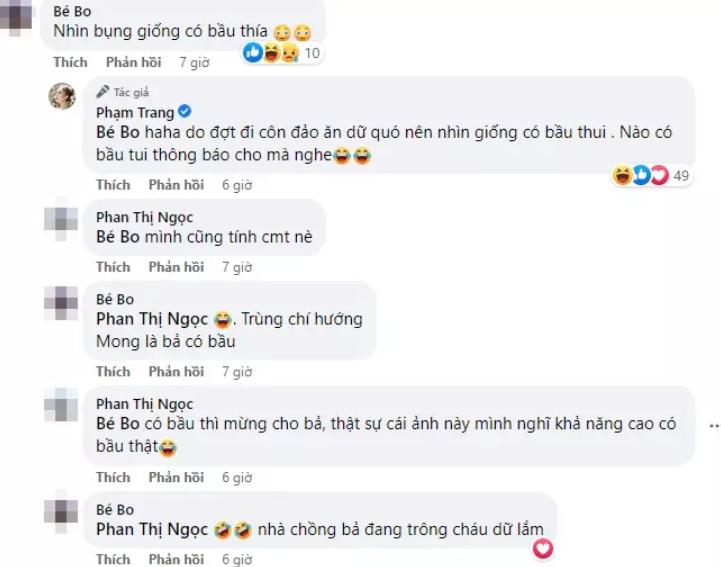 Trước nghi vấn của mọi người, Xoài Non ngay sau đó đã lên tiếng đính chính. "Do đợt đi côn đảo ăn dữ quá nên nhìn giống có bầu thui. Khi nào có bầu tui thông báo cho mà nghe", bà xã Xemesis cho hay.