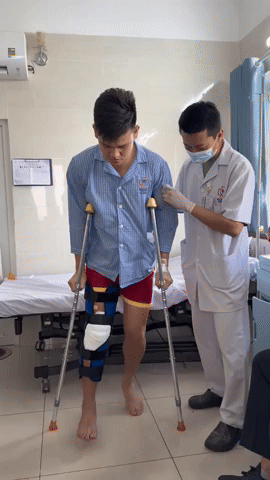 Dù vậy, Tấn Tài sẽ phải mất khá nhiều thời gian để phục hồi chấn thương. Sau phẫu thuật, anh đã bắt đầu tập nâng chân và chống nạng tự di chuyển. Tuy nhiên, hậu vệ sinh năm 1997 không khỏi cảm thấy đau đớn, anh liên tục nhăn nhó khiến người xem xót xa và chỉ biết động viên Tấn Tài cố lên.